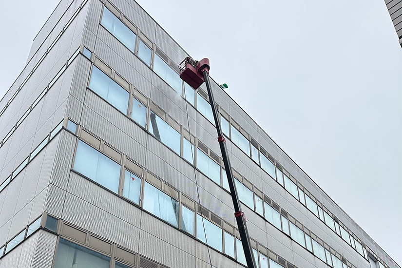 建築現場の清掃をはじめ、引き渡し前の最終クリーニングなどそれぞれのご要望や状況に合わせて対応し、工事を行います。マンションやビルの修繕工事にともなう外壁洗浄、窓などの高所作業の美装や、タイルクリーニングのほか、賃貸マンションの入退去時にともなう清掃工事も行っています。